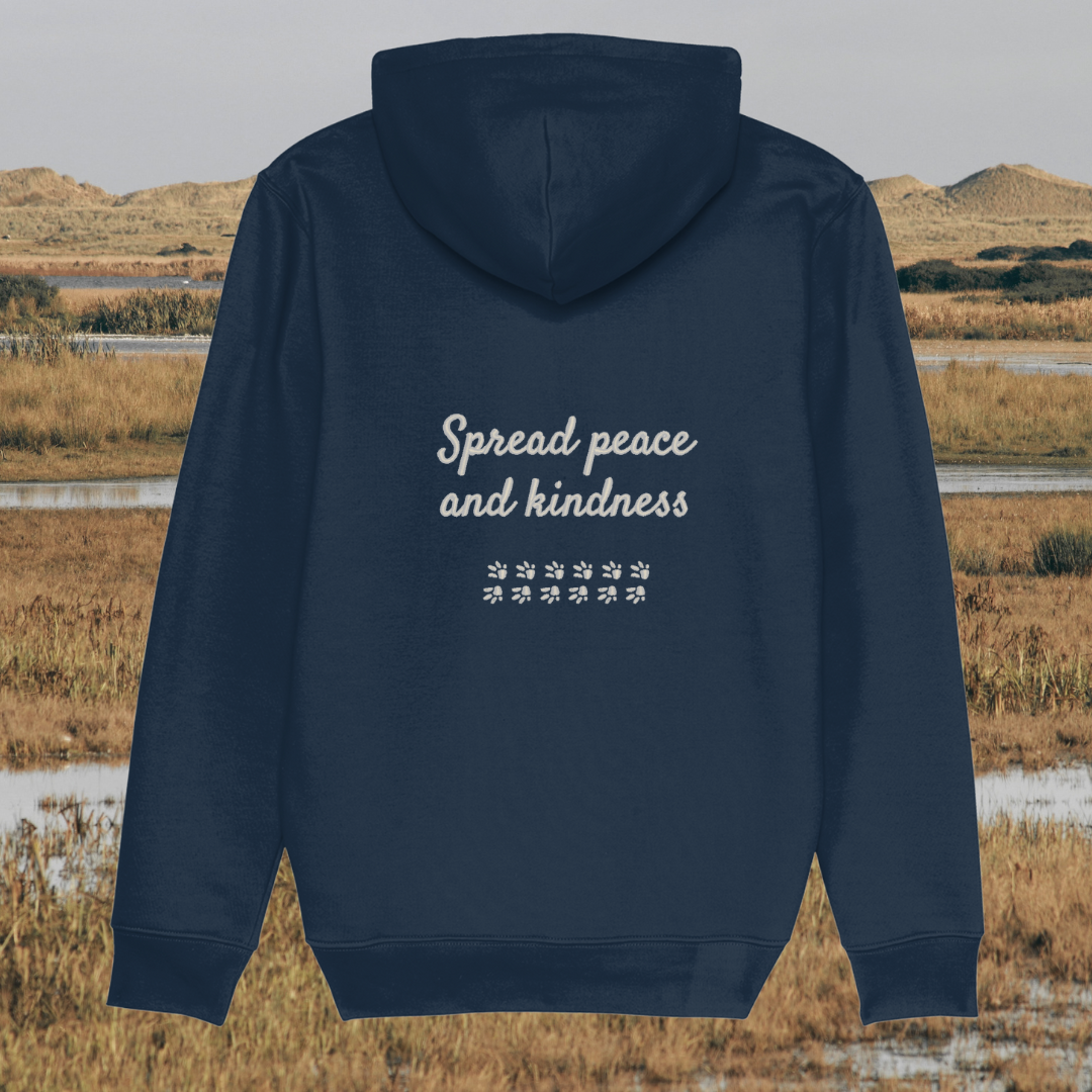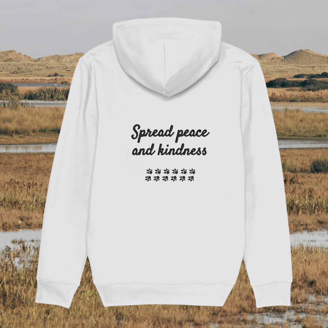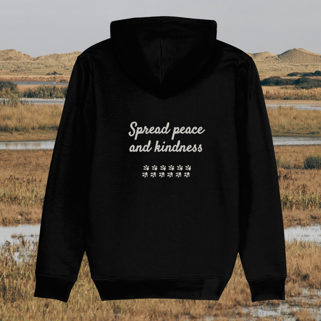 Showcasing a unique capybara design alongside the heartwarming message “Spread Peace and Kindness”, this hoodie celebrates the gentle, calm spirit of the capybara—symbolising harmony, friendship, and compassion. It’s a wearable reminder that kindness is powerful and peace begins with small, mindful actions.