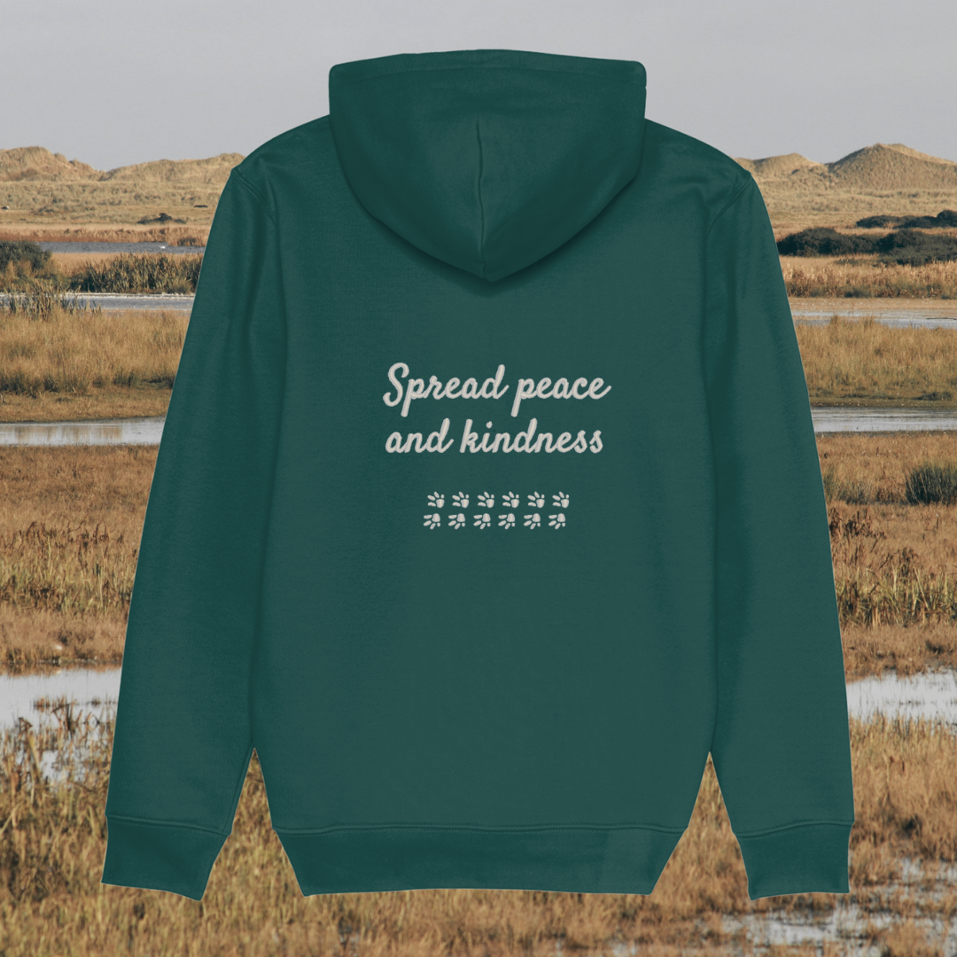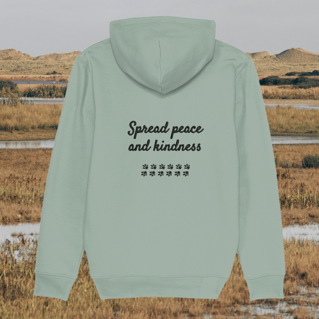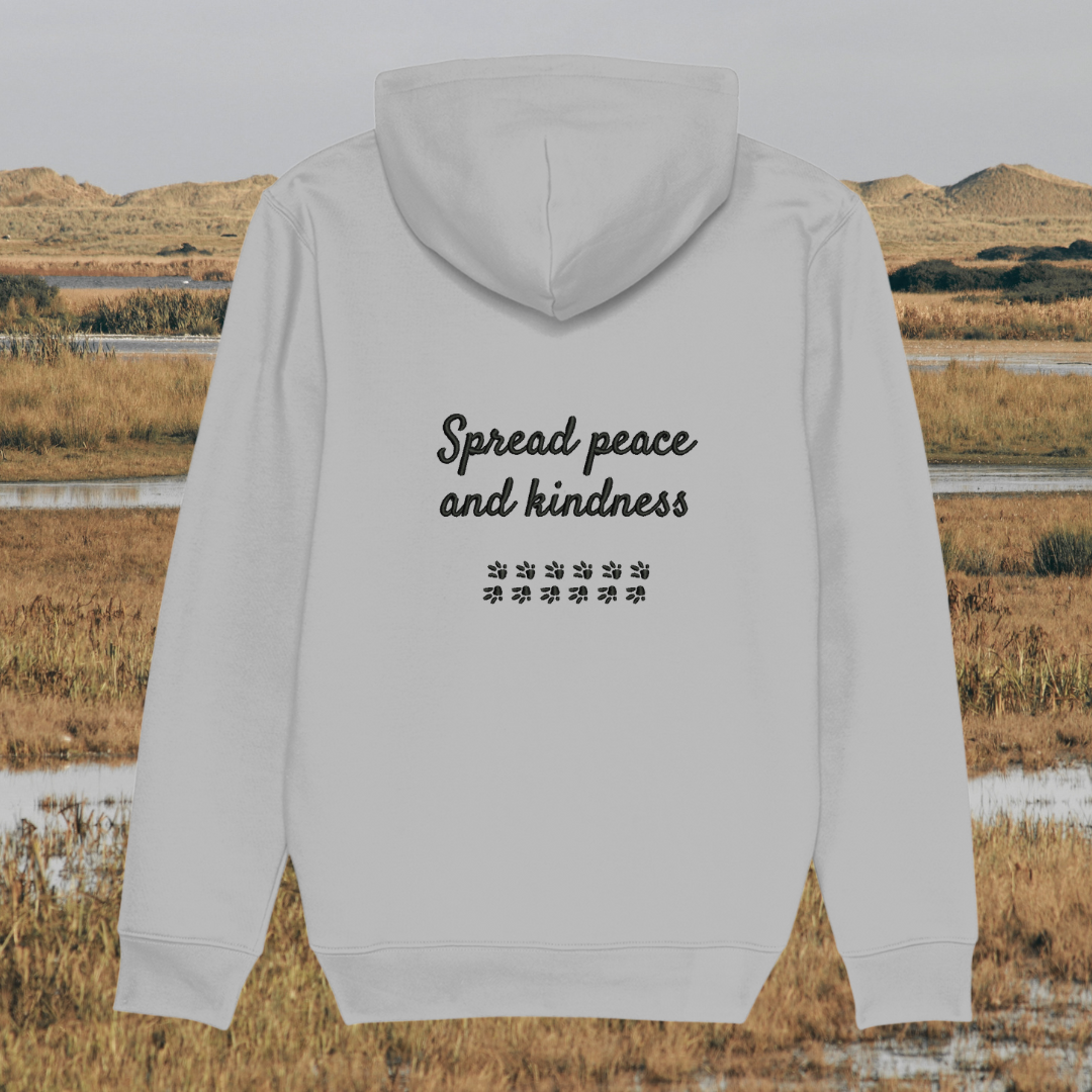 Showcasing a unique capybara design alongside the heartwarming message “Spread Peace and Kindness”, this hoodie celebrates the gentle, calm spirit of the capybara—symbolising harmony, friendship, and compassion. It’s a wearable reminder that kindness is powerful and peace begins with small, mindful actions.