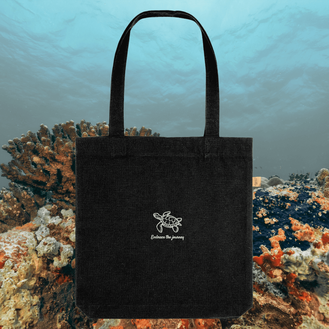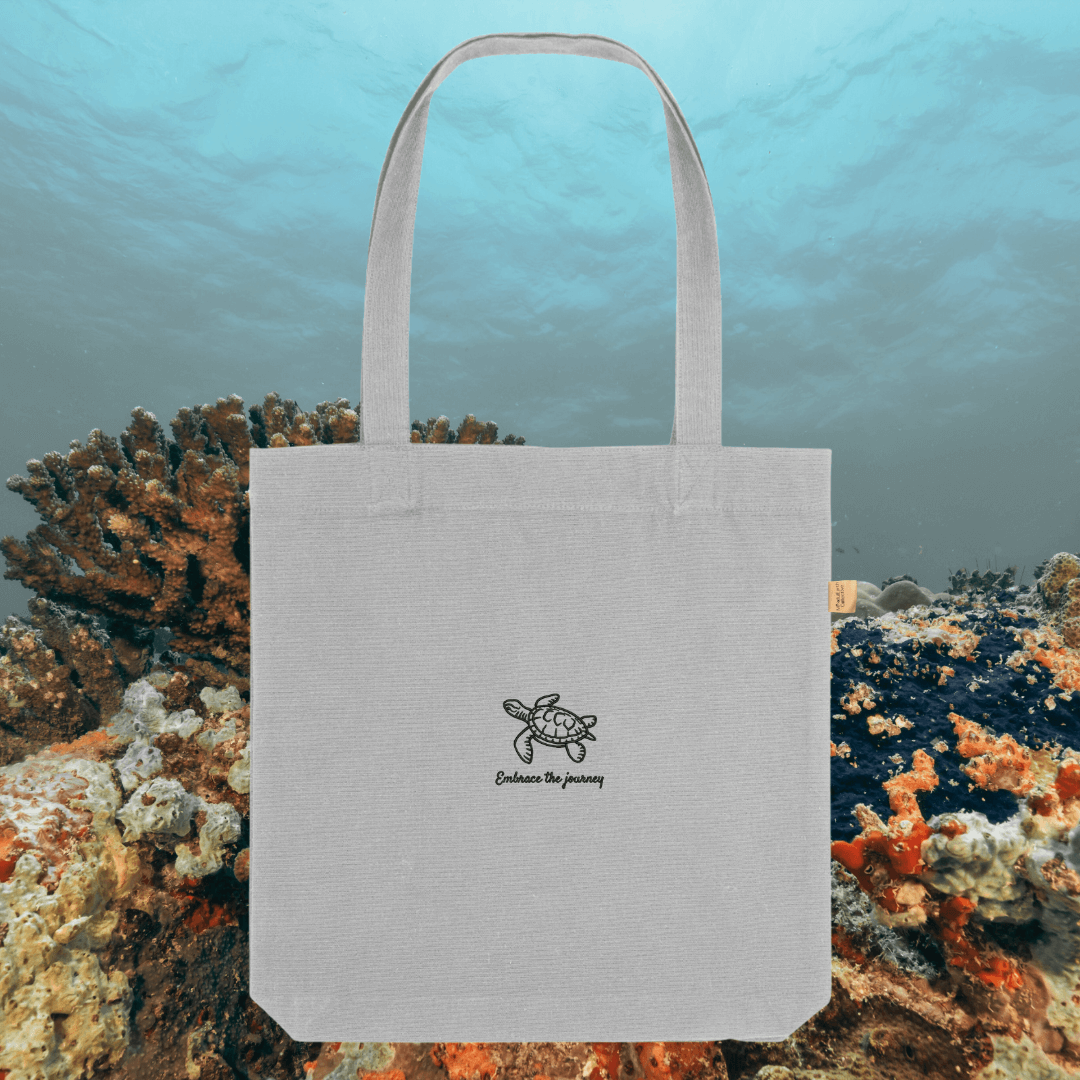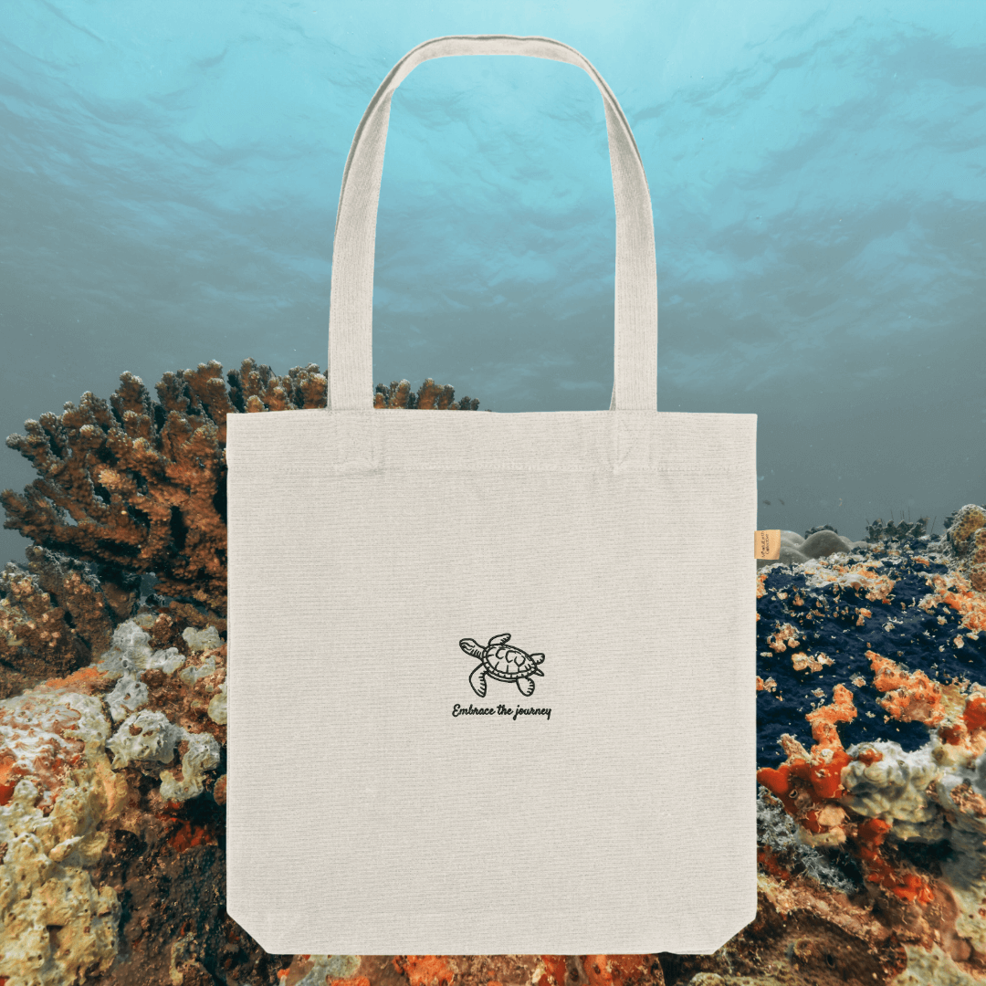 The bespoke Turtle design, featuring the inspirational quote “Embrace The Journey”, is a calming reminder to appreciate every step along the way and move forward with patience. With its practical size and lightweight feel, this tote bag is the perfect blend of function and mindful fashion.